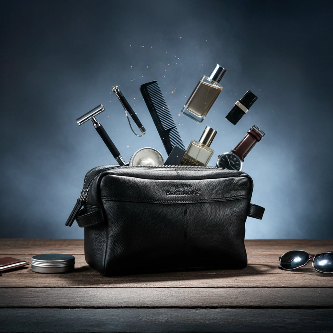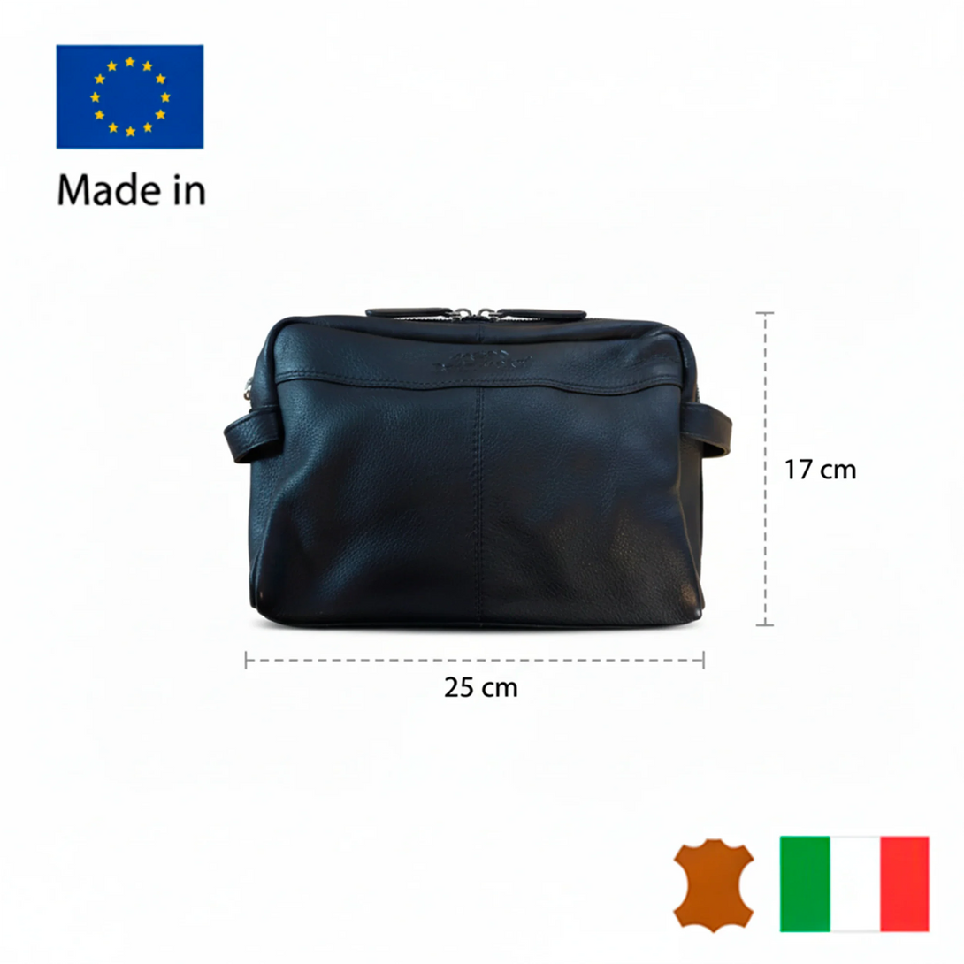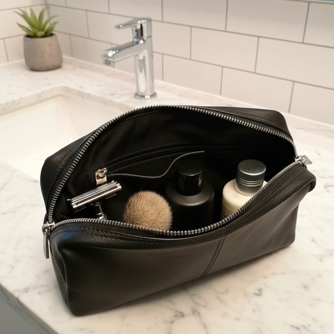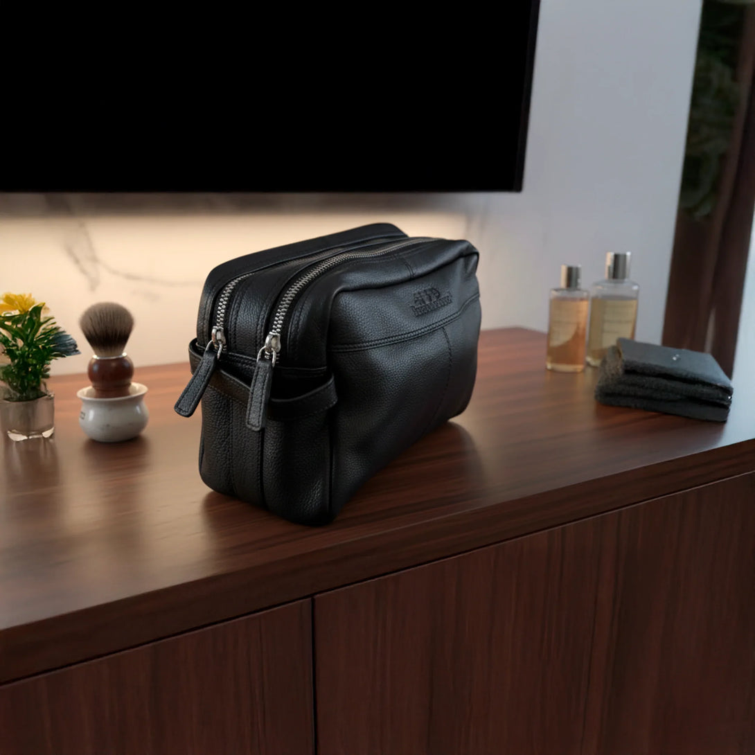 Men's leren toilettas – Zwart echt leer